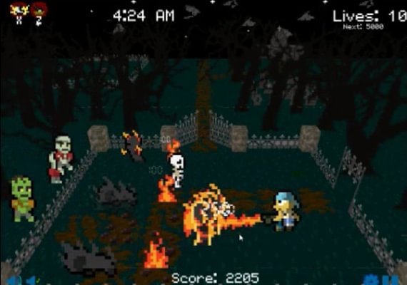 Résumé : Graveyard Smash est un petit jeu d'action rétro dans lequel vous incarnez Manuel Rodriguez, le gardien d'un cimetière local. Chaque nuit, Manuel se promène sur une carte générée aléatoirement et utilise sa pelle pour renvoyer les morts-vivants toujours plus nombreux dans la tombe et les empêcher d'assister à la fête du cimetière.