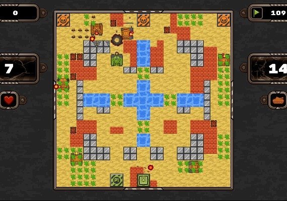 GROUND WAR is good old arcade tanks! In battle, gentlemen! The game has 4 difficulty modes and 120 levels. Attack and destroy enemy armored vehicles to achieve the main goal – victory, but do not forget to defend your base in the heat of battles, its destruction leads to the failure of your entire mission. Good luck!