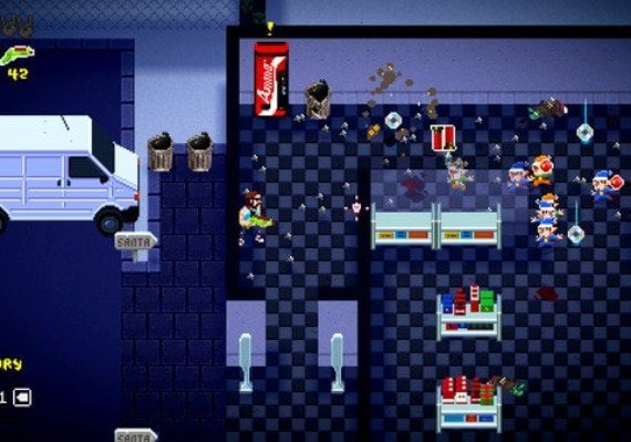 • Twin-stickroguelite action: Defend humanity's right not to celebrate Christmas.