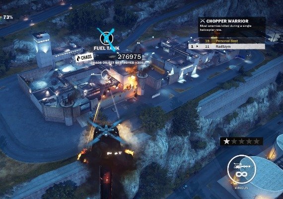 - Use your Grapple and Parachute to scale buildings, hijack vehicles, move quickly or tether objects together for creative new ways to cause Chaos.