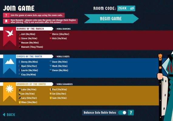 Gather 3 to 24 players who take on the roles of 'loyal' Nobles in your Council, voting on your choices and weaving their own devious plots. Perfect for game nights, tabletop groups, or friends who relish in scheming against each other.