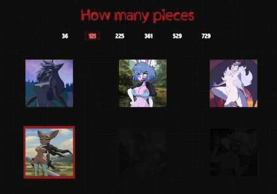 Lofi Furries is an adult-themed jigsaw puzzle game featuring alluring furry characters accompanied by a soothing lofi soundtrack. Complete six unique puzzles across multiple difficulty levels to gradually reveal provocative artwork.