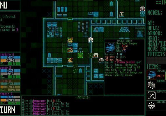 MAINFRAME DEFENDERS - tactical retrofuturistic strategy game. A computer virus has infiltrated the "Stargazer" research complex. Most of the robotic units are controlled by the virus. Lead a squad of 4 prototypes on a mission to defend complex mainframe. You'll have to repel assaults, destroy unit fabricators, download valuable data, clear infected nodes and do more on your way to deepest parts of the complex. Work with item limitations and drawbacks to build powerful combinations. Destroy your enemies with diverse tactics: overheat them, melt with corrosion, absorb damage and return fire. But don't rely on a single strategy too much - enemies might have a way to counter it. But above everything else: defend the Mainframe!