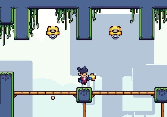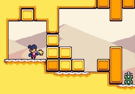 • Colourful 2D pixel art.