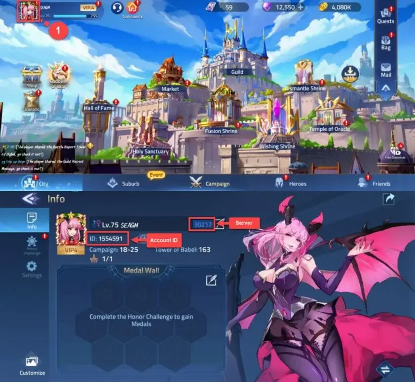 - Vérifiez le montant de M-Cash ainsi que l’Account ID et le serveur.