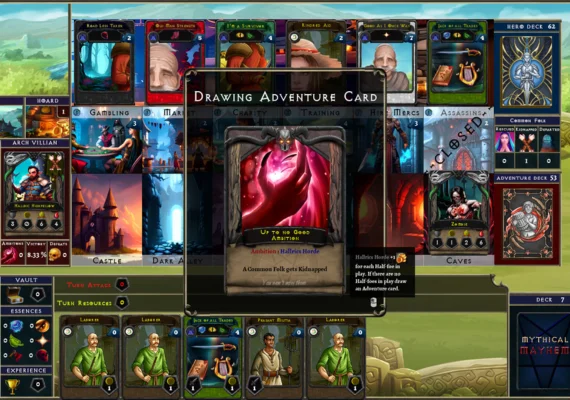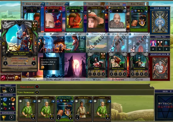 Mythical Mayhem is a fully-featured fantasy deck-building game packed with strategic depth, immersive campaign content, and endless replayability. Recruit legendary heroes, battle sinister arch-villains, and manipulate the Realm Balance to your advantage. Whether you're a new adventurer or a seasoned card master, Mythical Mayhem offers layers of tactical gameplay across various modes and scenarios.