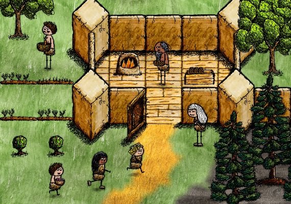 But as real-life history has shown, civilization is fragile. A generation that is born into the lap of luxury---on the backs of their ancestors' hard-won accomplishments---can just as easily squander their inheritance as build upon it. Key resources run out over time, so careful management, planning, and organization are necessary to prevent an inevitable collapse. Thus, the game graduates from the individual challenge of primitive survival in the early stages to a group organizational and leadership challenge in the later stages. How do rules and procedures for group survival propagate across multiple generations? What did our great grandparents have in mind for this village?