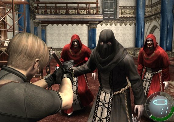 In Resident Evil 4, special agent Leon S. Kennedy is sent on a mission to rescue the U.S. President’s daughter who has been kidnapped. Finding his way to a rural village in Europe, he faces new threats that are a departure from the traditional lumbering zombie enemies of the earlier installments in the series. Leon battles horrific new creatures infested by a new threat called Las Plagas and faces off against an aggressive group of enemies including mind-controlled villagers that are tied to Los Illuminados, the mysterious cult which is behind the abduction.