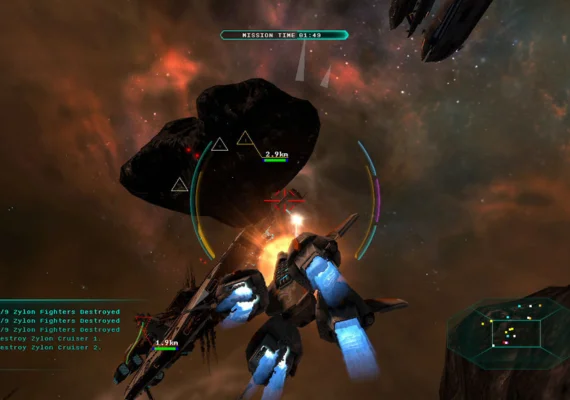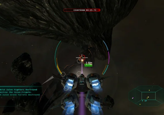 • Epic Space Battles – Defend humanity against the onslaught of the Zylon fleet, as you pilot your ship amongst huge capital ships and take part in treacherous dogfights.