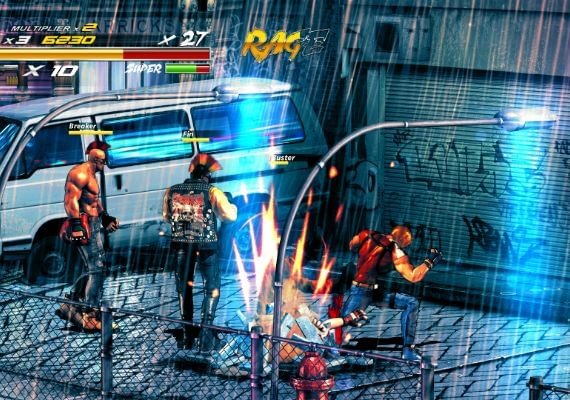 Gameplay: Das Gameplay basiert auf einem neuen Kombo-System, mit dem du Schläge und Tritte miteinander verbinden kannst. Bringen Sie Ihre Gegner schnell zu Boden, halten Sie sie betäubt oder werfen Sie sie in die Luft und jonglieren Sie weiter! Wenn du eine Kombo durchhältst, füllt sich deine Super-Anzeige schneller und du kannst einen verheerenden Angriff ausführen. Du kannst auch Waffen wie Brechstangen, Schwerter und Maschinengewehre finden und benutzen, die in den Levels verstreut sind. Nicht zuletzt ist jeder Charakter mit einer einzigartigen Seitenwaffe ausgestattet, aber die Munition ist knapp, also setzen Sie sie weise ein! Der Einstieg in das Spiel ist einfach, aber nicht leicht zu meistern.