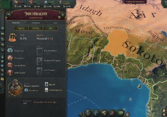 Le jeu nous permet de diriger l'une des dizaines de nations. Votre mission commence en 1836 et se termine cent ans plus tard, en 1936. Chaque population a ses propres besoins et désirs. Prenez soin de l'économie et des impôts de votre pays pour garantir les biens essentiels et équilibrer l'emploi. Décidez si votre pays sera une puissance industrielle ou s'il se concentrera sur l'agriculture.