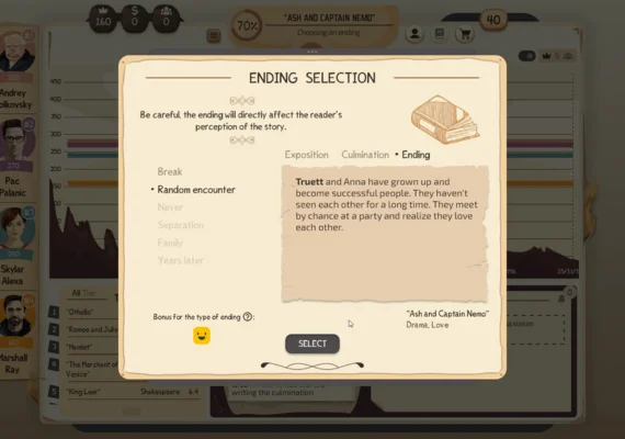- Develop your skills through a perk system that defines your unique writing style.