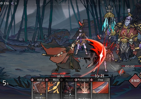 Cards with martial arts methods are displayed. Winning is determined by how well you use your cards against your opponents. Techniques acquired while defeating adversaries are added to your deck. Success is dependent on selecting the appropriate cards and combining them with deck abilities.