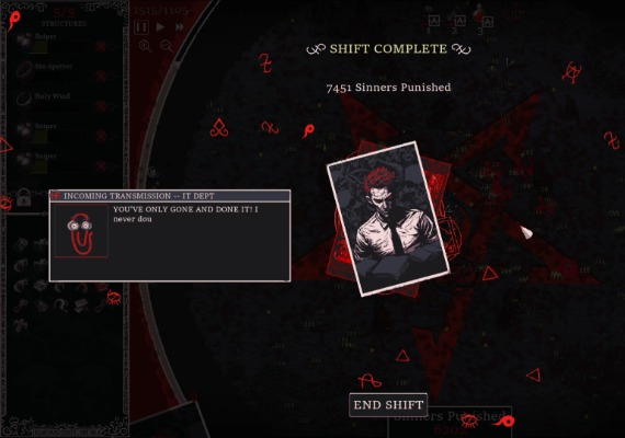 - Earn wages for each shift based on the number of sinners disciplined. Your success hinges entirely on your efforts.