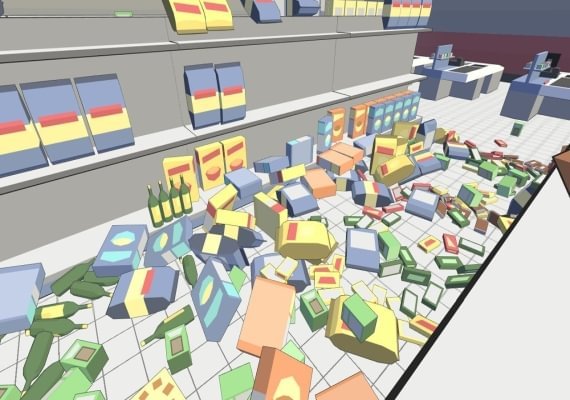 Catlateral Damage is a first-person destructive cat simulator where you play as a cat on a rampage, knocking as much stuff onto the ground as possible. See the world through the eyes of a cat! Like other first-person games, you can walk and look around, jump, and crouch. Unlike other first-person games, your primary weapons are your two cat paws, which you can use to swipe at and knock objects onto the floor.