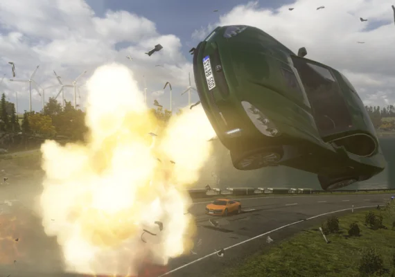 • High-energy multiplayer with explosive stunts and collisions