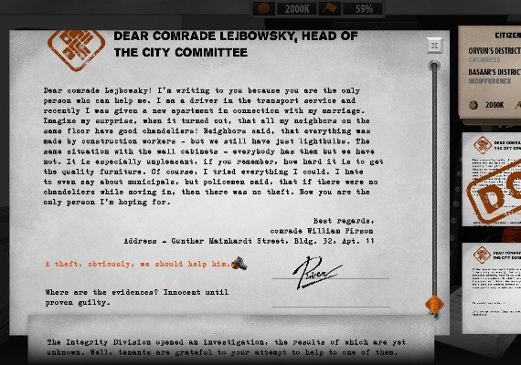 - Always be two steps ahead - Every district in Iron-1 needs your help, but with a limited budget, you cannot help everyone. Strategically distribute resources to the people to earn their trust and increase your influence over them. There is no chance to please everyone, so you will inevitably have to take sides.