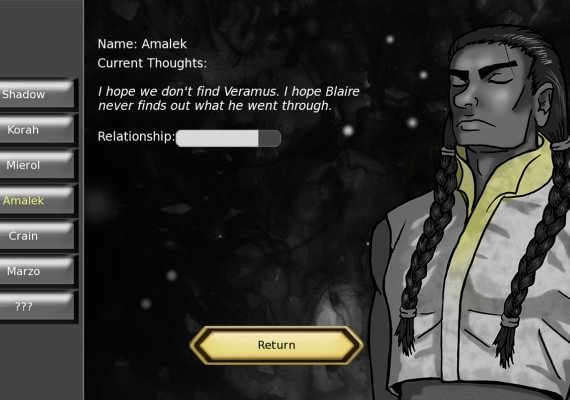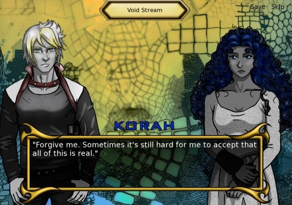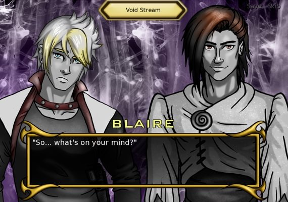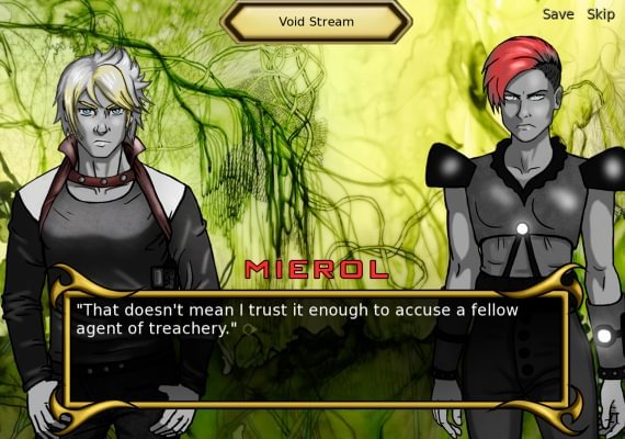One of the hallmarks of the traditional visual novel is a branching story line. This is typically accomplished via choices forced on the player. In some of the most complex visual novels, there are dozens of these choices and multiple endings. I call Quantum Conscience "experimental" because it seeks to do away with these choices. Outside of the very first few minutes of the game, in which the player chooses to be a male or female protagonist and answers some questions about their background, there are no forced choices. Rather, the player character--a soldier in the far-flung future--is given the power to, at any time, read the minds of the other characters.