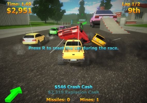 For nearly every action during a race you get in-game cash rewarded. You get cash for crashing other cars, explosions caused by missiles and mines that affect other cars, for jumping over epic ramps and getting airtime cash, for driving best laps and best race times as well as for winning the top spot ranks in a race. Use that in-game cash to unlock other tracks or convert them to coins for use in the car pimp shop.
