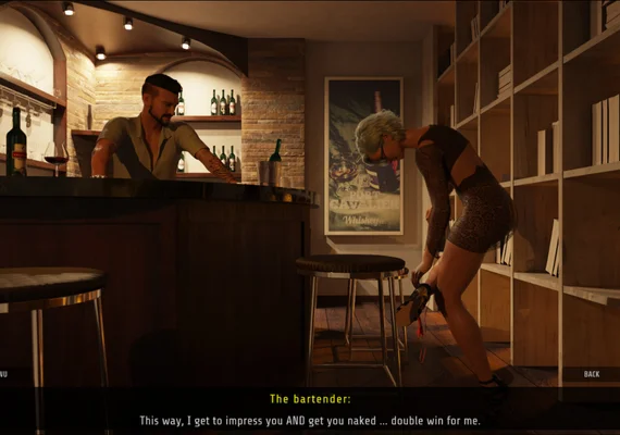 In Sex Story - Cuckold Life - Episode 2, Nikki and Adam's sex life has been enhanced by the dirty videos and pictures from their first cuckold experience. Now, feeling horny and anxious for another adventure, Nikki accepts a cocky bartender's invitation for a private shot-tasting back at his place, leaving Adam naked and longing for a sexual release. The visual novel features high-definition graphics and realistic-looking characters, bringing this intimate story to life. You'll follow their sex story and find out if Adam is excited to be a cuckold again and how this new twist will affect their relationship.