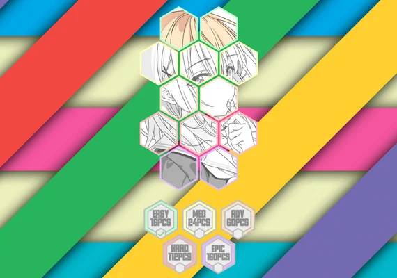 • Assemble 5 HD-quality anime artworks showcasing beautiful girls, each designed to captivate with vibrant detail.