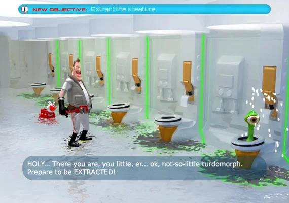• Rebuild your spaceship, survive a sewer monster, and dodge galactic law enforcement—just another day in Ace’s life