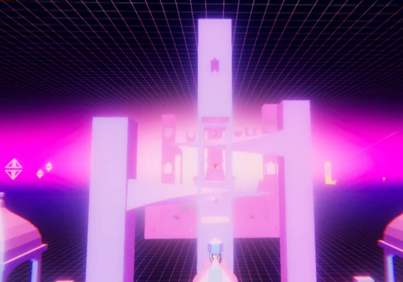 - Hidden pathways through complex neon maze environments