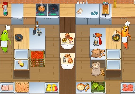 You and your partner – aspiring chefs – find yourselves in a quite impractical commercial kitchen. It’s divided by a long serving counter, yet the products and the appliances you both need are placed on opposite sides of the room. Your job is to cooperate, cook together and serve orders of steaming, delicious food. Chop, stir and fry everything you can while throwing (at) your partner all the ingredients they need. Prove that cooking is a piece of cake as long as you do it together!