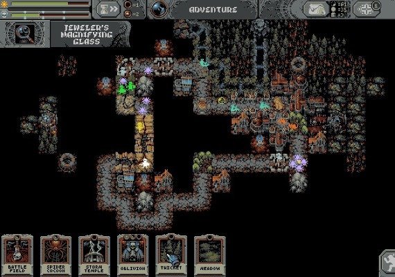 - Plan Your Struggle: Strategically place building, terrain, and enemy cards along each loop to create your own dangerous path. Find balance between the cards to increase your chances of survival while recovering valuable loot and resources for your camp.