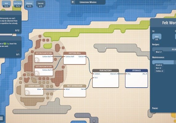 You are not penalized by the game - errors do not result in losses. The immersion and learning process is simple and comfortable. The chains will become more intricate and require more imagination with each subsequent mission. Do research to help with resource production and keep an eye on the system you've built. Construct a quarry close to the mountain, a storage facility, and a link between the two. Isn't it simple? Now you're ready to go on your journey as a logistics expert. It's time to broaden your production chains into new markets!