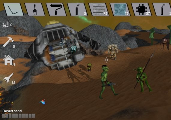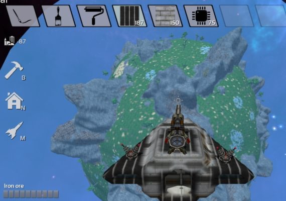 Empezarás extrayendo piedra y talando árboles para producir materiales de construcción primitivos. A medida que avance el juego, podrás fabricar materiales más avanzados y, en última instancia, construir una nave espacial. Los materiales también se utilizan para fabricar una amplia gama de objetos diferentes, que van desde simples hornos y aserraderos, hasta avanzados logros tecnológicos como torretas láser y sensores de espacio profundo.
