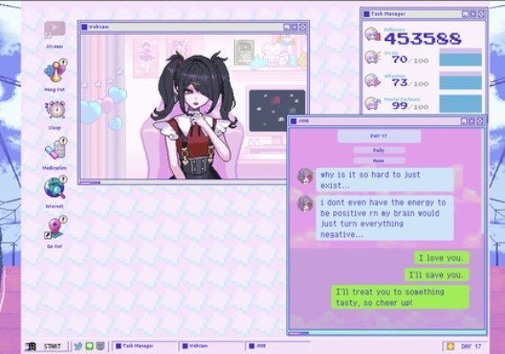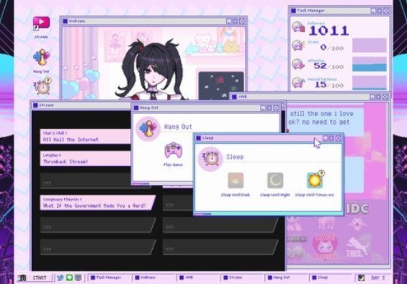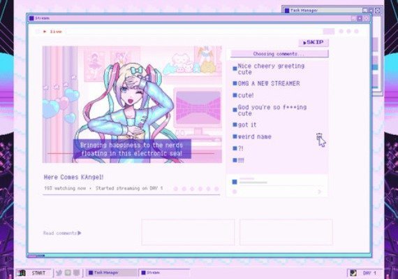 NEEDY STREAMER OVERLOAD is a “multi-ending ADV” depicting daily life with “OMGkawaiiAngel-chan”, a young girl with a rather extreme need for approval attempting to become the #1 “Internet Angel” (streamer). Gradually build up OMGkawaiiAngel-chan’s number of followers as she spends her days streaming, using various ”stress relievers”, and generally being kinda messed up. Experience all the different crazy ups and downs and find out for yourself whether this story is even capable of having a happy ending.