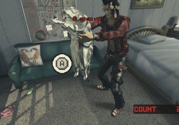 Travis Touchdown here. It's been three years since I clawed my way to #1 in the United Assassins Association. I thought it'd be fine to take it easy for a while after that, but it looks like I rested on my laurels a little too long. I found myself sliding down the ranks all the way to #51, and to make things worse, some other assassin—Skelter Helter—comes out and starts nagging my head off about me killing his brother or something. So yeah, a real pain in the you-know-what.