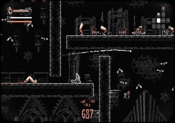 - Beautifully crafted black and white pixel environments and characters