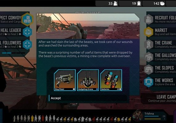 In this world inspired by Indian culture you lead a convoy of outcastes. These desperate men and woman following your vision of a better future. Under your guidance they travel with you through the wastelands. Your goal is the Crypt, a mystical place that promises untainted technology and safety.