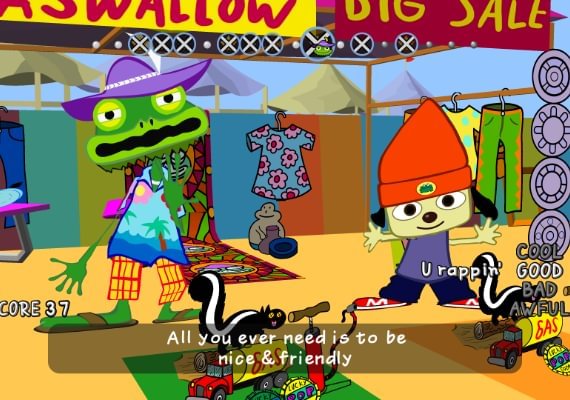 Rap to the beat with PaRappa the Rapper – the world’s first and only paper-thin, superstar, rapping dog. Help PaRappa win Sunny Funny’s heart on a feel-good quest to learn from legendary rap masters like Chop Chop Master Onion and Instructor Mooselini.