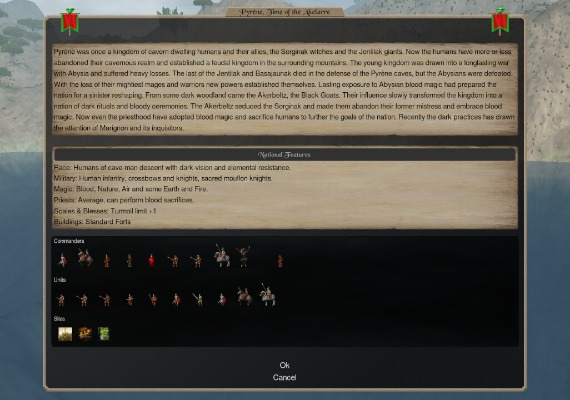 In Dominions, you take control of a strong entity that leads a nation and strives for godhood. Pretender Gods can range from magically powerful arch magicians to massive titans or gigantic monuments. The strengths of the pretender gods vary depending on the deity and nation you play as.