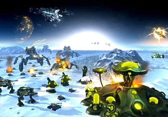 Manage your resources, develop your base, and take command of infantry, tanks, aircraft, and gigantic colossi of war to battle not only your foes, but weather anomalies and mysterious secondary factions in richly strategic and original RTS gameplay. In the single player Conquest mode, develop your technological capabilities and expand your colonies over the furthest sectors of space, assembling a formidable armada.