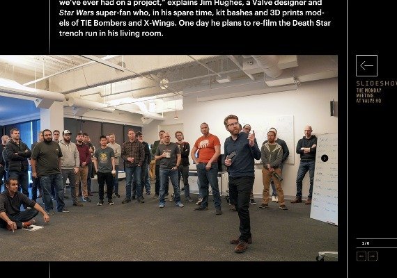 This interactive storybook does not use or require a virtual reality headset. It merges a 25,000 word traditional story with 3D video game technology to give customers a fly-on-the-wall perspective of Valve’s creative process.