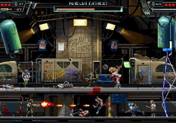 Jagen Sie allein oder geben Sie Unterdrückungsfeuer und stürmen Sie gemeinsam im Koop-Modus auf den Feind zu, während Sie durch die neongetränkten, mit Graffiti übersäten Stadtlandschaften der 80er Jahre rennen, springen und in Deckung gehen.