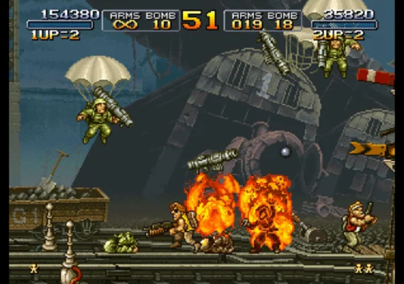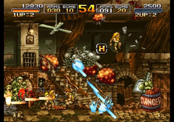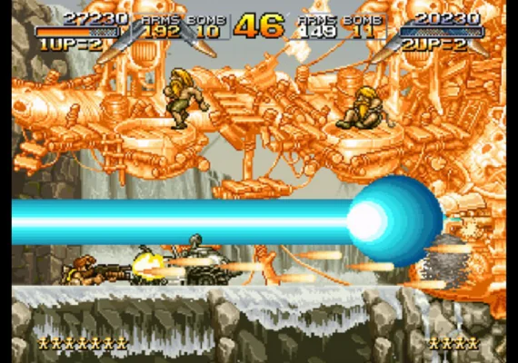 - ARCADE MODE (MAIN MISSION): Play the original arcade version of “METAL SLUG ” with its charismatic protagonist soldiers Marco & Tarma, maneuver the almighty “METAL SLUG ” tank, and fight your way through the 6 missions of the game to thwart Gen. Morden's evil ambitions!