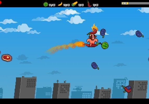 Mr.Vegan es un juego sobre un culturista vegano que vuela en una guindilla por el espacio... Oops spoiler... En realidad no, hay 3 localizaciones: una ciudad, un desierto y el espacio.