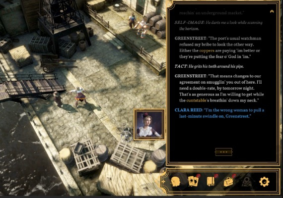 This Victorian steampunk cRPG invites players to explore an open world as three characters with intertwining stories. The game emphasizes investigation, interaction, and decision-making to shape the world and its inhabitants. Players level up skills through use, and outcomes are influenced by a tarot card chance system. The choice of solving problems through combat, persuasion, magic, or explosives is up to the player in this challenging docklands setting.