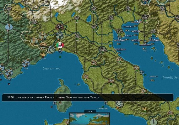 • Play on a top-down hex based map where each hex covers 20 miles that includes all the key cities, railroads, logistical centers and maritime trade routes.
