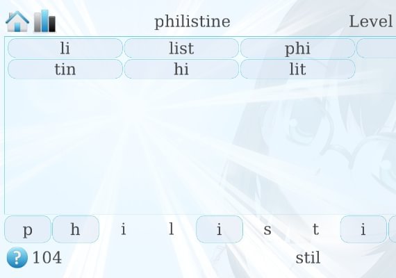 Wordlase is a word-puzzle game. You need to compile words from the letters of offered one. For example, you can make words "ant" and "potion" from the letters of "interpolation". But you can't assemble "mol" since there is no "m" letter. You need to know 3655 unique words and press the button 14568 times to completely finish 30 demo levels. Play, have fun, become educated!
