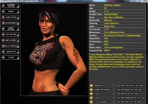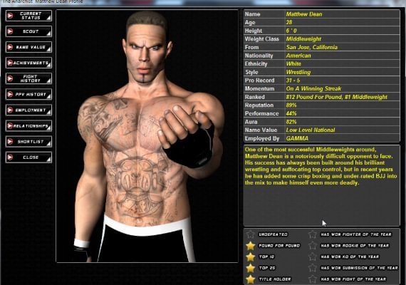 • Luchadores muy detallados, con multitud de estadísticas que cubren todos los elementos principales de las MMA, desde el golpeo hasta el jiu jitsu.