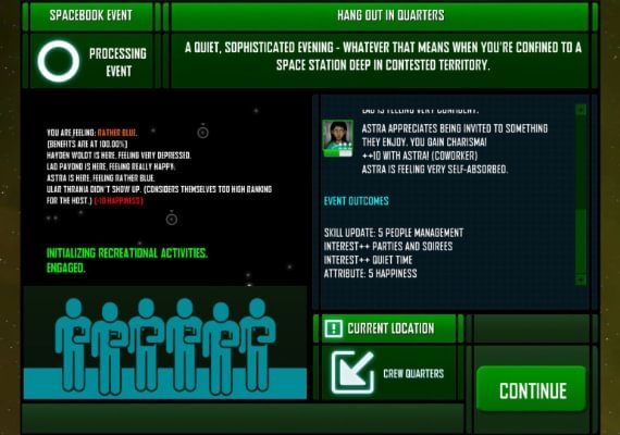 - Aktualizuj swojego Spacebooka, strategicznie "polubiaj" statusy i wysyłaj prywatne wiadomości do innych mieszkańców stacji.