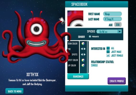 - Szczegółowe tworzenie postaci: wybieraj spośród 5 różnych gatunków, od człowieka po kałamarnicę z mackami!