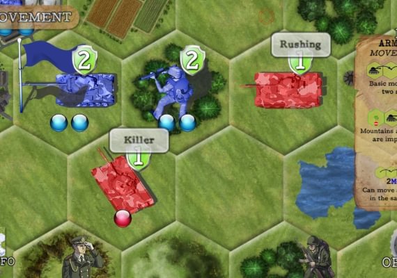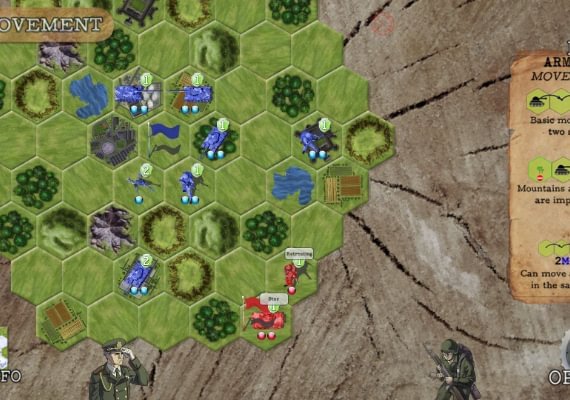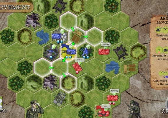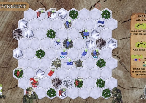 To win the game, you must gather resources, build an army, and outsmart your enemy(-ies)... and a little luck every now-and-then doesn’t hurt either. The game is played on a hexagonal board and features three types of units, each with their own specific attributes and bonuses: infantry, armour, and artillery. These units are then further affected by the varying terrain on the board itself. The game offers a total of 21 terrain types, a mix of which is randomly generated on the board, though there are some pre-set epic maps. Mountains, forests, rivers, roads... all these determine the ease or struggle of movement and combat. Different strategies will emerge with unique terrain layouts, giving each multiplayer game a fresh feel for endless strategy.