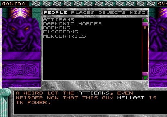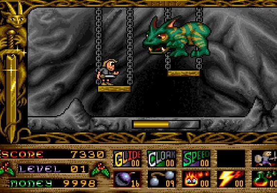 Prophecy I - The Viking Child: Fight your way through 16 levels with diverse scenarios, including medieval castles and mountains. Spread throughout the levels are shops in which you can buy potions and other magical items to help you along the way. Before you finally face the Dark Lord Loki, you must also defeat the 8 Apprentices of Darkness.